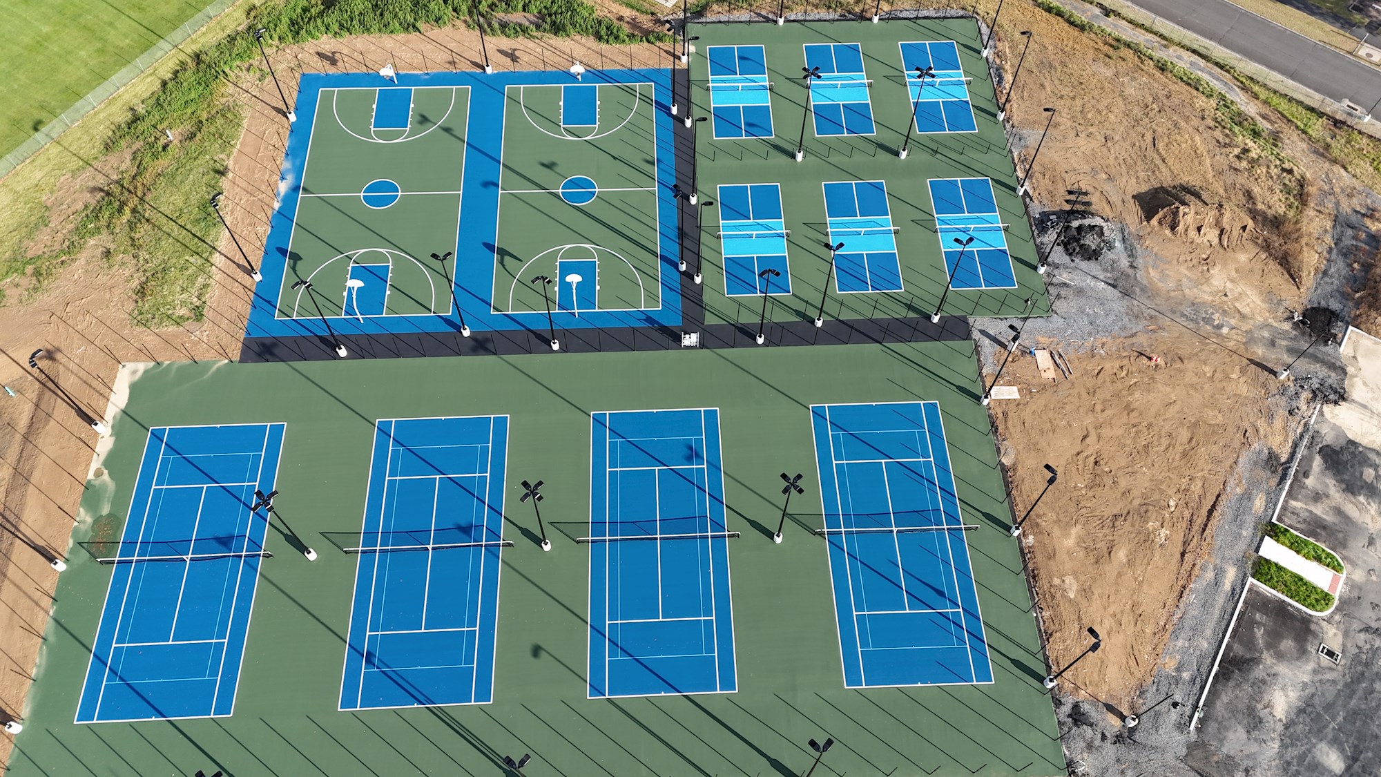 Outside, the center boasts a variety of well-maintained courts, including two basketball courts, six pickleball courts, four tennis courts, and two bocce courts, making it an ideal destination for recreational sports enthusiasts.